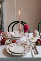 A classic white plate embellished with a sprinkling of hand painted red poinsettias. We love these plates for everyday use as much as for special occasions. Each plate is handcrafted and hand-painted by artisans in the Veneto region. Sold as a set of four.